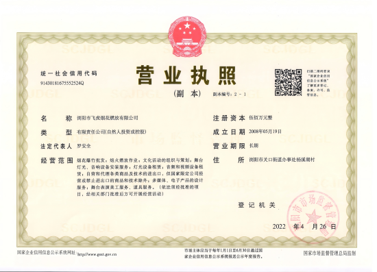 Liuyang Flying Tiger Pyrotechnics Co., Ltd is one of the most rapidly growing companies in fireworks industry. We provide a series of service ranging from fireworks R&D, manufacturing, marketing to artistic displays, and obtain the Certificate of Self-run Export Right and A-Class Display Qualification.
