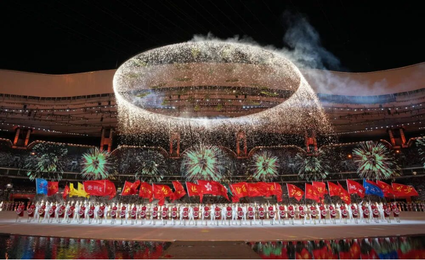 The fireworks display at the opening ceremony, combining artistic beauty with technological sophistication, became a major highlight. Before the cultural performance began, a creatively designed electronic "fireworks show" blending reality and virtuality took place. A circular fireworks installation above the venue was activated simultaneously, sending golden rays of light raining down, dazzling and ethereal. Among the highlights was a large, striking "flower"—a virtual representation of the kapok flower, known as the "heroic tree of the South and the first flower of Guangzhou." The traditional fireworks display was equally spectacular, with dazzling fireworks illuminating the night sky, and the final, breathtaking scene becoming an unforgettable memory for countless people.